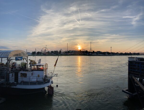 目当ては美術館なのですが、到着した昨日は毎月通っていたレストランへ行って食事をしたあと、ライン川沿いのお店で川と暮れゆく空を見ながらビールを飲んでました。通っていた当時は電車の時間を気にしながらだったのでゆっくり飲めた試しがなかったのですが、昨日は心ゆくまで堪能できてうれしかったなー。川の対岸には大きな移動遊園地が来ていて(さすがデュッセル)、その奥で日が沈んでいくのがとても絵になっていました。