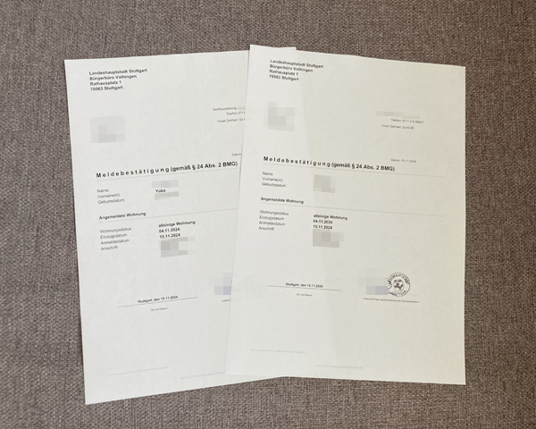 シュトゥットガルトでの住民登録