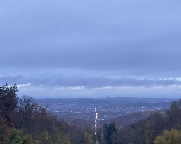 お城を抜けると、眼下に広がる街が。方向的にはWeilimdorf辺りでしょうか。家を出たのがちょっと遅かったので、日が沈みそうな時間だったのとお天気があまり良くなかったのが残念。晴れた日に見たら、すごく綺麗なんだろうなあ。
