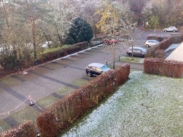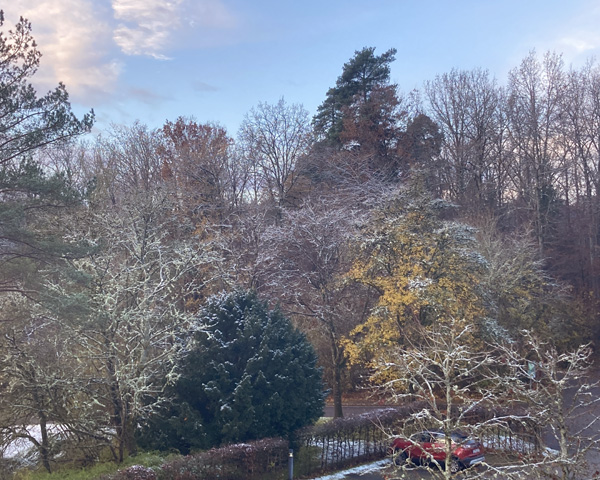 昨日(2024年11月19日)は、西からの強い風が大きな雨雲を連れてきて、シュトゥットガルトでは風が強いなか大雨が降りました。だからなのか分かりませんが、気温はそんなに低くなく、日中は10℃もあったようです(雨がすごくてずっと家にいたので外気温がよく分からない)。ただ、日が沈むと一気に気温が下がり、降り続いていた雨が真夜中にはみぞれから雪に変わったらしく、今朝起きて外を見てみたら、かなり薄っすらとですが雪が積もっていました。どうやら2024年冬の初雪だったみたいです。