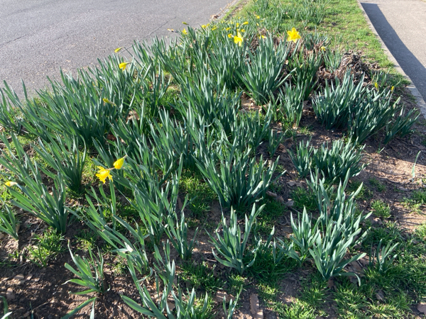 スーパーへ行く途中の沿道には花壇となっているところがいくつかあり、そのうちの一つではラッパスイセンが花を咲かせていました(上の写真)。ちょっと前は、土から垂直に伸びる葉っぱが見えているだけだったのに、いつの間に。まあ、この暖かさ続きなら花が咲いてもまったくおかしくありませんね。先日はクロッカスが咲いているのも見ましたし、もう春ってことでいいかもしれませんね。そろそろ真冬仕様のジャケットはしまうかな〜。
