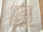 やっぱり編み物を優先してしまうため、なかなか始めることができないでいたのですが、先日、やっと刺し始めました。上の写真がその途中経過です。模様の線が真っ直ぐなので、初心者にも刺しやすい。ただ、刺した針の位置が気に食わなかったりして、何度か刺し直しをしたので、結構時間がかかってます。あともう少しで一枚が刺し終わります。