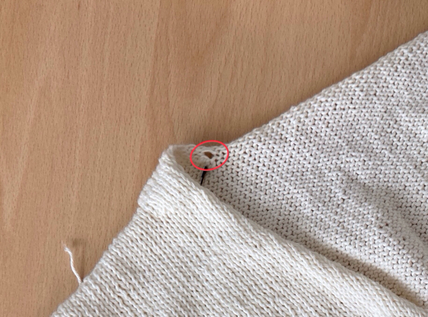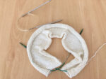 初めてこの編み方をした時、せっかくの糸が、、って思いましたが、襟、袖は拾い目をして編むことになるので、ラウンドネックだと特に伸び止めになって好きです。