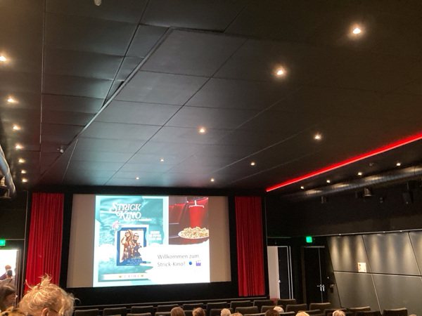 何はともあれ、ドイツで初映画館、初映画館で編み物(会)へ行ってきました。結果としては、行ってよかった! 会場の雰囲気と、映画館で映画を見ながら編み物をするというのがどういう感じなのかを体験することができてとても楽しかっです。