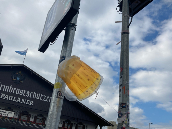 ビールの形をした風船をくくりつけたおにーさんが一人。こんな風船、初めて見たー! 誰かと待ち合わせをしていての目印だったのかな。この風船が見られただけでもオクトーバーフェストに来たかいがありました(強がり)。