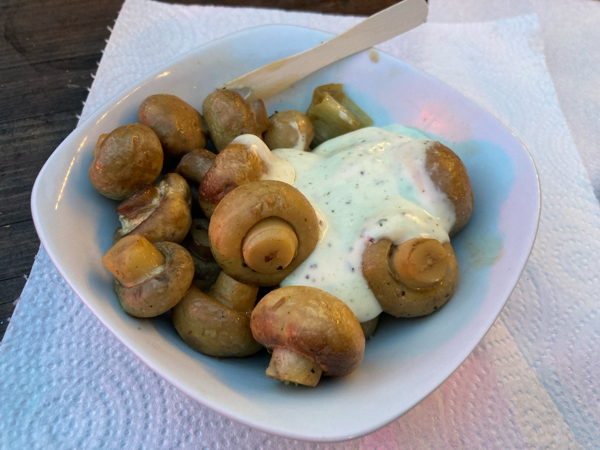 ドイツのお祭りで見かけると食べたくなるのがシャンピニオン。よくあるのは丸ごと素揚げしたものなんですが(めちゃくちゃ美味しい)、昨日食べたお店のは茹でたもので、揚げとはまた違った味わいで、とても美味しかったです。揚げてないから罪悪感もない! 揚げは油の処理が面倒で真似しなかったけど、茹でなら真似できる! これ、今度家でもやろう。ニンニク入りのマヨネーズも買わなきゃ。茹で汁はスープに活用できるし、自分で作るのが楽しみ。