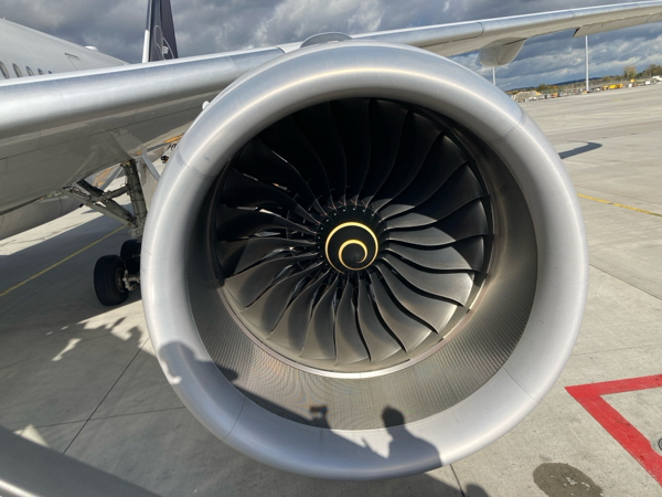 下の写真は、乗った飛行機のジェットエンジン?部分。ここをじっくり見たのは初めて。渦巻き模様が描かれてたなんて知らなかった〜。