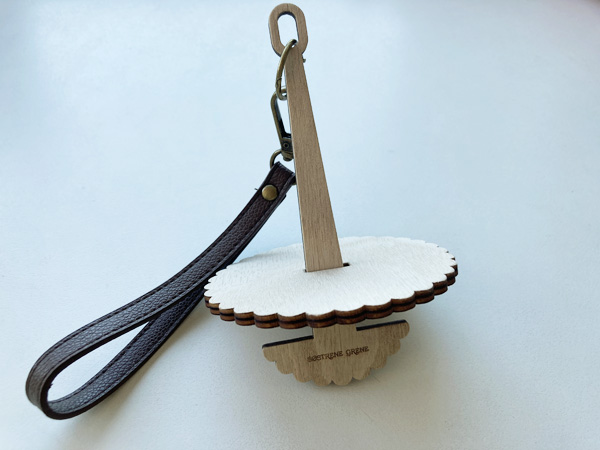 そのときに見つけたのが、手首にベルトを掛けて編み物をすることができる道具Wrist Yarn Holderでした。基本的に海外のニッターさんたちは、糸端を外側から取るのが普通のようで、それをすると毛糸玉が転がってしまうため、台座の上に一本の棒が刺さっている据え置きタイプや陶器製や木製のボウルタイプのヤーンホルダーが売られているのをよく見かけます。持ち歩き用に手首に吊るすタイプは、ネット上では見るものの、実店舗で販売されているのは見たことがありませんでした。そもそもこれらのヤーンホルダーは、中から糸端を出す自分にはあまり必要性を感じなかったため、Søstrene Greneにも据え置きタイプやボウルタイプは売っていましたが(現在はボウルタイプのみが現行商品)、自分が使う機会はないかもな〜と思って購入していませんでした。