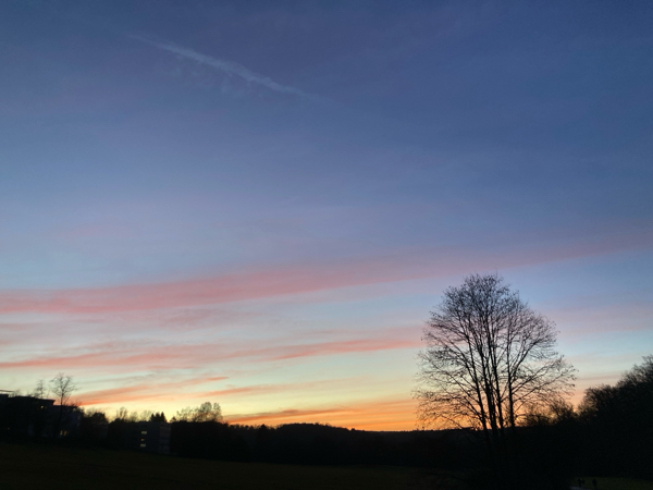 早く到着してしまったので、研究所に入る前に少しだけ校内を散歩したとき、ちょうど日の入りのころだったので、空の色と景色の影の明暗さがとてもキレイでした。