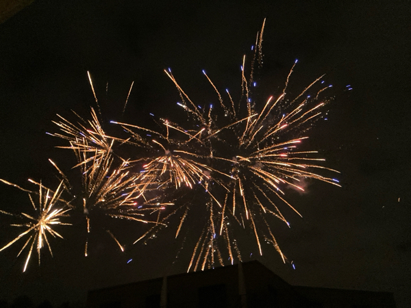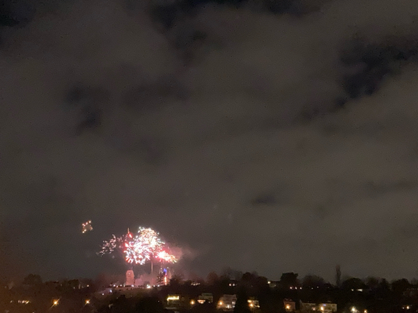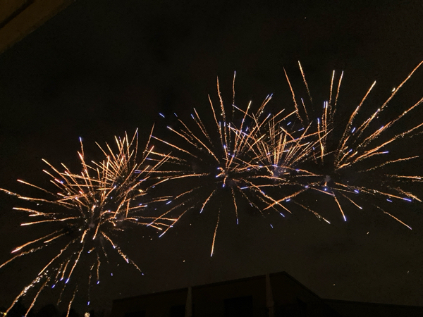 年末の夕方くらいからパラパラと上がっていた花火でしたが、年明けとともに一気にたくさん上がり、それを見ながら新年を祝いました。一部写真に撮ったものを上げておきます。我が家の近くには、日本の花火大会で見るようなちょっと小さめの、でも本格的な花火を上げるご家庭があるようで、それがとても見事でした。