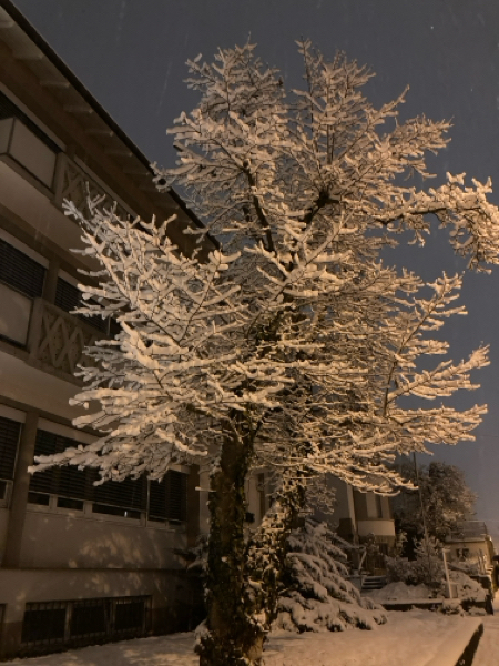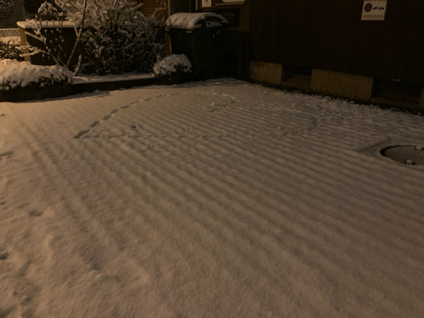 昨日(2026年1月26日)のシュトゥットガルト上空には雪雲がずーっと停滞していて、16時くらいから降り出し、今朝方まで断続的に降り続いていたようです。ちょうど降雪のピークだった時間帯に、予約を入れていたレストランへ出発するのに外に出たら勢いよく降っていました(上の写真)。あまりの雪の降りっぷりに、バスを待っている間、降ってくる雪を眺めていました。雪が降っているなか出かけるのは久しぶりかも。雪がすごくても、バスやUバーンは時間通りに運行してたのはさすがです。