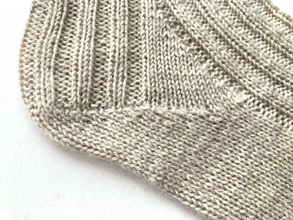 昨日の投稿でも少し書きましたが、Lurikのかかとはこれまで編んだことがあるやり方とちょっと違っていて、結構苦戦しました。パターンにある通りに編んたつもりがなかなかそうならなくて何度もやり直してでもできなくて、結局自分で分かりやすいように少し変えちゃったんですが……それがどうなったのかというと、こんな感じです。