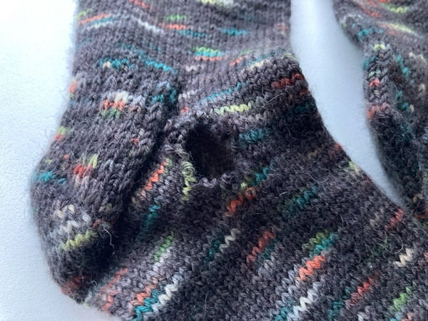 昨年の一時帰国のおり、実家滞在中に母から『これ、穴が開いちゃって……』と手渡されたのが上の写真にあるVilliviiniというくつ下。これは私が編み、母にプレゼントしたもの。贈ったくつ下を履いてるのか聞くと『もったいなくってなかなか履けないわ〜』と言っていたけど、どうやらちゃんと履いてくれてたようでうれしい。