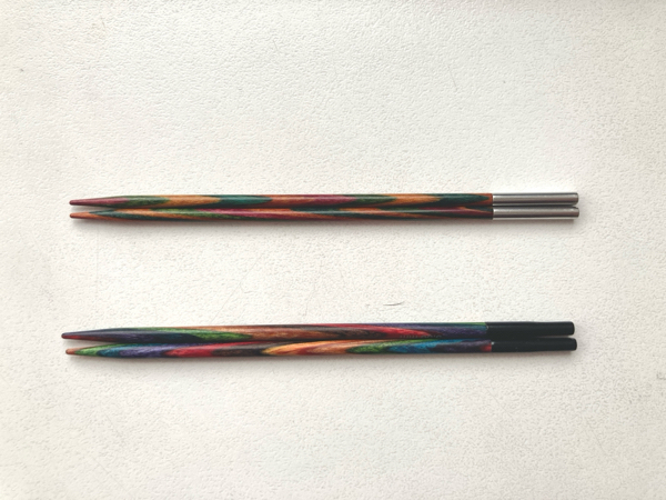 手元にあるKnitProのシンフォニーの根元は、銀色です(写真上)。だからどうした、という感じかもしれませんが、こういったちょっとした違いはうれしい。ちょっとマニアックだけどさ。