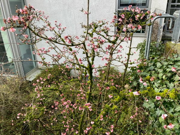 昨年シュトゥットガルトで初めて迎える春の少し前、まだ肌寒い日が続いていたころ、駅へ向かうのに最適な道を見つけたので、歩いていました。すると、途中の道の両脇に植っている木がもう花をつけていて、すいぶん早く咲いてるんだなー、と印象に残っていました。用事があって出かけるのにその同じ道を歩いていたら、やっぱりもう花をつけていました。ほかがまだ枝だけで茶色いなか(しかもお天気も曇り)、そこだけパアア!と明るく輝いているように見えるから不思議。花が咲き乱れる季節も好きですが、こういう時期にひっそりと咲く花が一番好きです。