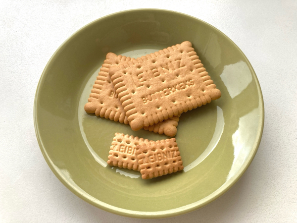 ドイツのどのスーパー(Bio系は除く)でも必ず販売されているお菓子というのがいくつかありまして、そのうちの一つであるLeibnizというバタービスケットは定番中の定番(だと思う)です。素朴な味わいのこのクッキーが大好きで、たまに無性に食べたくなります。先日がまさにそうだったので、売り場で選んでいたら、Leibnitz Original Minisという袋入りの物があったので、何とく惹かれて購入しました。開けて思わず『かンわいい〜!』と叫び出しそうになるくらい、これがかわいかったんです。こういうミニチュアに弱いんだよなあ。