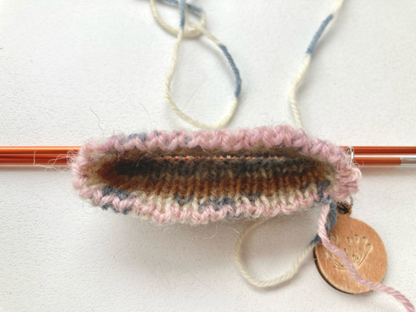 とは言っても、くつ下でこの作り目で編み始めるのはあまり経験がありません。このまま進めて行くとして一番問題となるのは、出来上がったくつ下が履けないことなので、そうならないよう、途中で試着するなどして慎重にすすめていこうっと。