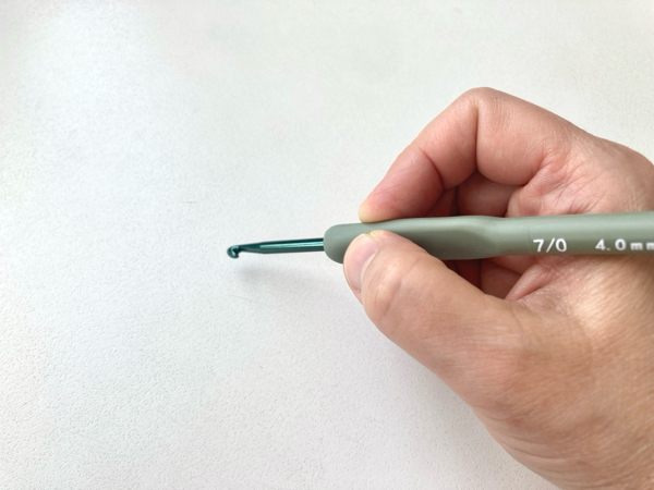 持ち手は最近よく見かけるゴムグリップが付いています。持っている針はグリップなしだけだし、編み友が持っていたグリップ付きを一度だけ試させてもらったことがあるくらいで、ほとんど使ったことがありません。グリップ付きってどうなのかな?と思っていましたが、結構持ちやすいものですね。