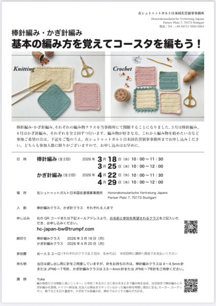 以前、在シュトゥットガルト日本国名誉領事事務所で、編み物をしたい方たちのお手伝いをすることになったことを書きました。