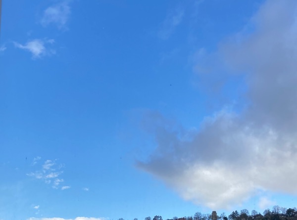 昨日(2026年3月30日)は朝からずーっと目まぐるしいお天気だったシュトゥットガルト。朝はわりと天気が良かったのに、夫が出勤するころには空が真っ暗になり雨。外の窓枠に何かぼやっとしたものが見えたので近づいてみたら霙が積もってました。その後、お昼ごろには快晴となり青空が見えたのでやれやれと思っていたら、夫から「雹が降ってきたー!」とメッセージが。窓の外を見ると、確かに夫の職場方面には真っ黒な雲がかかっていて、じわじわ自宅方面に近づいて来ていたんです。で、あっという間に真っ暗になり、夫が言っていたように雹がバチバチと窓に当たる音がし始めて、一気に気温が下がったようでした。でもそれは30分くらいで雲が晴れて青空が。そんなことをくり返して日が沈んでいきました。上の写真3枚は、一日のうち二、三時間の間に起きた空を同じ方向で撮影したものです。同じ日の空とは思えない。