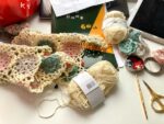 で、サクサクと編んで、まずは一模様が終わりました。葉っぱ模様がステキだ。