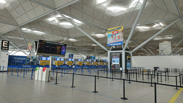 人っ子一人いません。海を楽しんでいる家族の写真と“Discover Europe £19.99~”と書かれているRyanairの看板が物悲しさを誘います。夏ごろにはここも人で溢れているでしょうか。残念ながらそのときにはもうイギリスにはいないので、確認することはできませんが……。