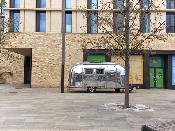 いま住んでいる場所は、唯一の大型スーパーの前にかなり広いマーケットスクエアがあります。ここに週2回(水曜日夕方と土曜日お昼)foodParkという屋台車がやって来るのですが、イギリスでは、こういった車を使った移動販売をあちこちで見かけます。