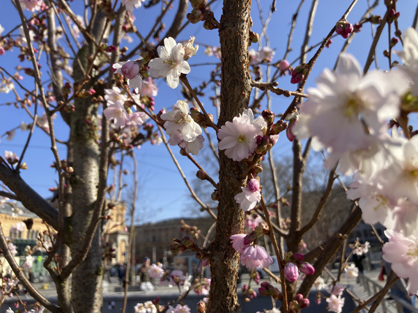 夫が忙しくなかなか行けなかったのですが、久しぶりに(おそらく昨年12月以来)ハノーファーを楽しみました。やっぱり町が大きくて賑やかなのは、気持ちも何となくウキウキします。お天気が良かったこともあってMitte側は本当に人が多かったです。そして、町のところどころに五〜七分咲きくらいの桜の枝がありました。これらを見て、何年か前に行った旧西ドイツの首都だったボンの桜並木を思い出しました(ボンの桜並木はかなり有名)。